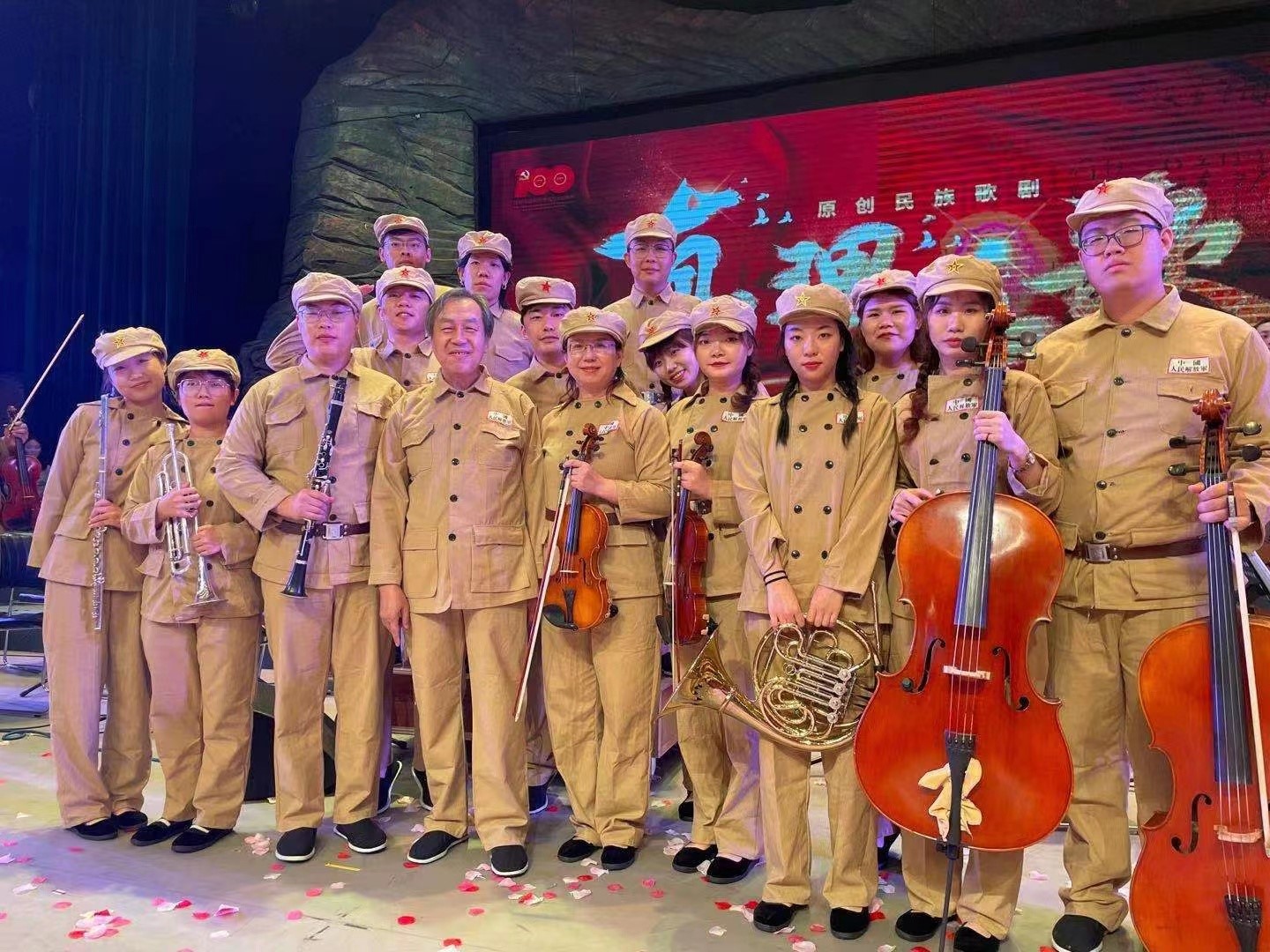 2021年,为庆祝中国共产党成立100周年,日本色情 创排了原创民族歌剧《真理之歌》。面对全新的乐谱,全新的演出形式,和几乎没有任何歌剧演出经验的学生们,哪怕是舞台经验丰富,对于韩梅老师来说也是巨大挑战。整整一个学期的排练,一次排练四个多小时是常有之事,但韩梅老师从未缺席,她悉心向学生们传授歌剧演出要领、演出经验。临期末考试,韩老师努力在保障排练之余为学生们争取休息及复习功课的时间,反复叮嘱学生一定要合理安排休息与复习时间,决不允许因为排练出现不及格。最终,经长达数月的排练,韩梅老师与交响乐团的学生们共同克服困难,于2021年6月出色完成日本色情 庆祝中国共产党成立100周年专题演出——原创民族歌剧《真理之歌》的首次公演任务,并获得业内人士一致好评。